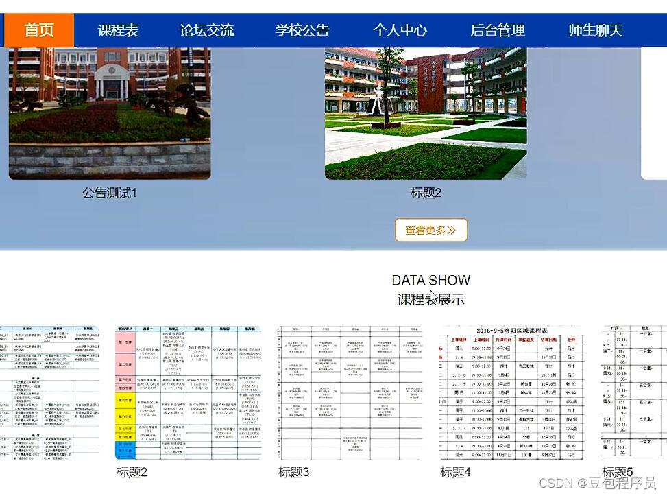 在前台首页可以查看首页、课程表、论坛交流、学校公告、个人中心、后台管理、师生聊天等内容