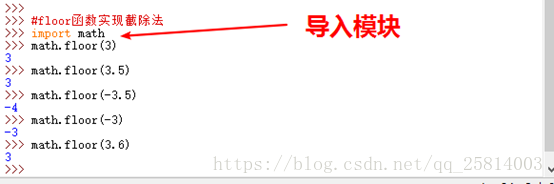 上述floor截除法,也可以通过函数实现,不过需要先导入math公共模块。