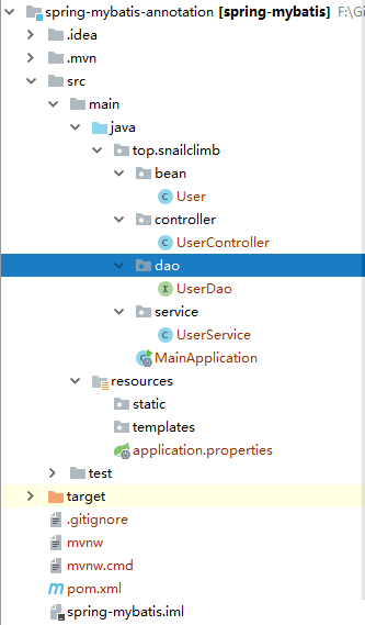只演示一个根据姓名找人的方法,为了让UserMapper能够让别的类进行引用,可以在UserMapper类上添加@Mapper注解: