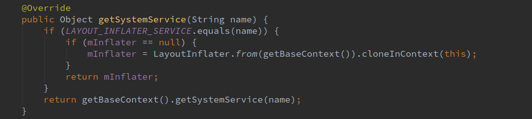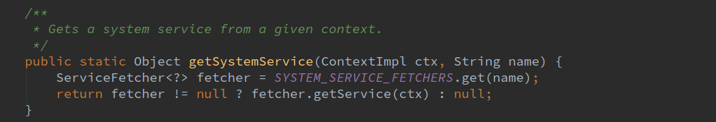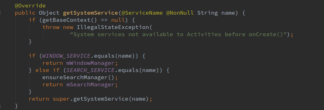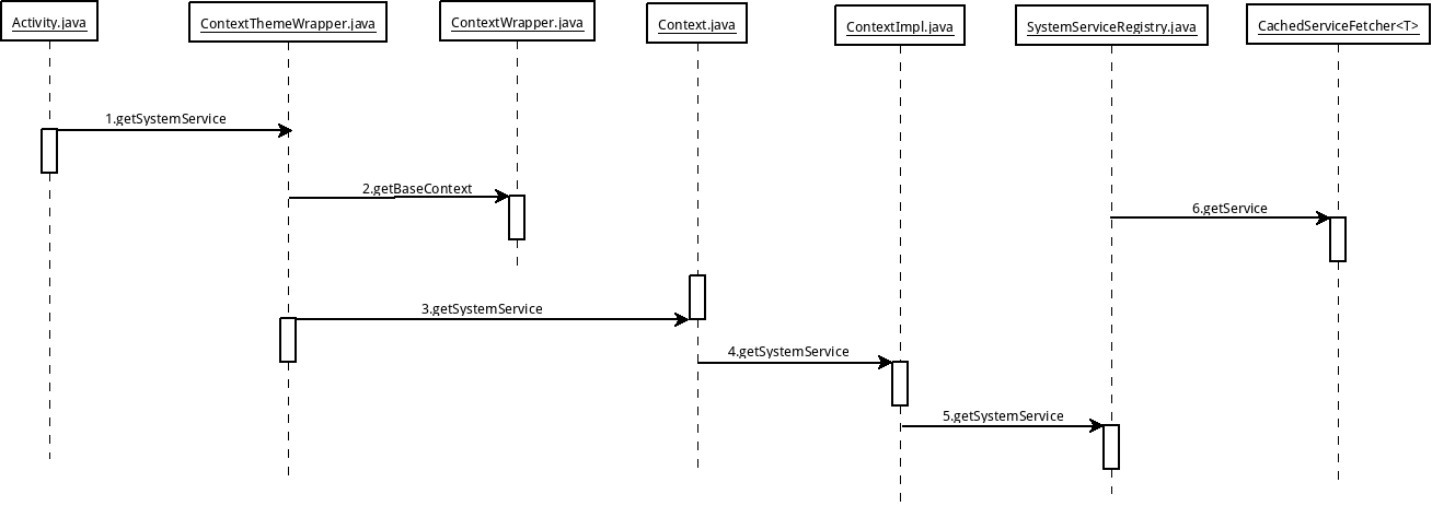 由于Activity.java继承自ContextThemeWrapper.java,所以就会调用父类的getSystemService函数。