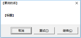 x=MessageBox(GetForegroundWindow(),"【标题】","【要说的话】",5);