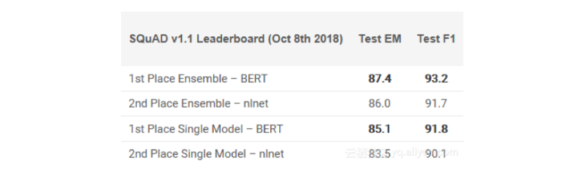 不少专家声称BERT的发布标志着NLP的新时代。继ULMFiT和ELMo之后,BERT凭借其性能真正击败了竞争对手。正如原论文所述,“BERT在概念上更简单且更强大”。BERT在11个NLP任务中获得了最先进的结果,在SQuAD基准测试中查看他们的结果: