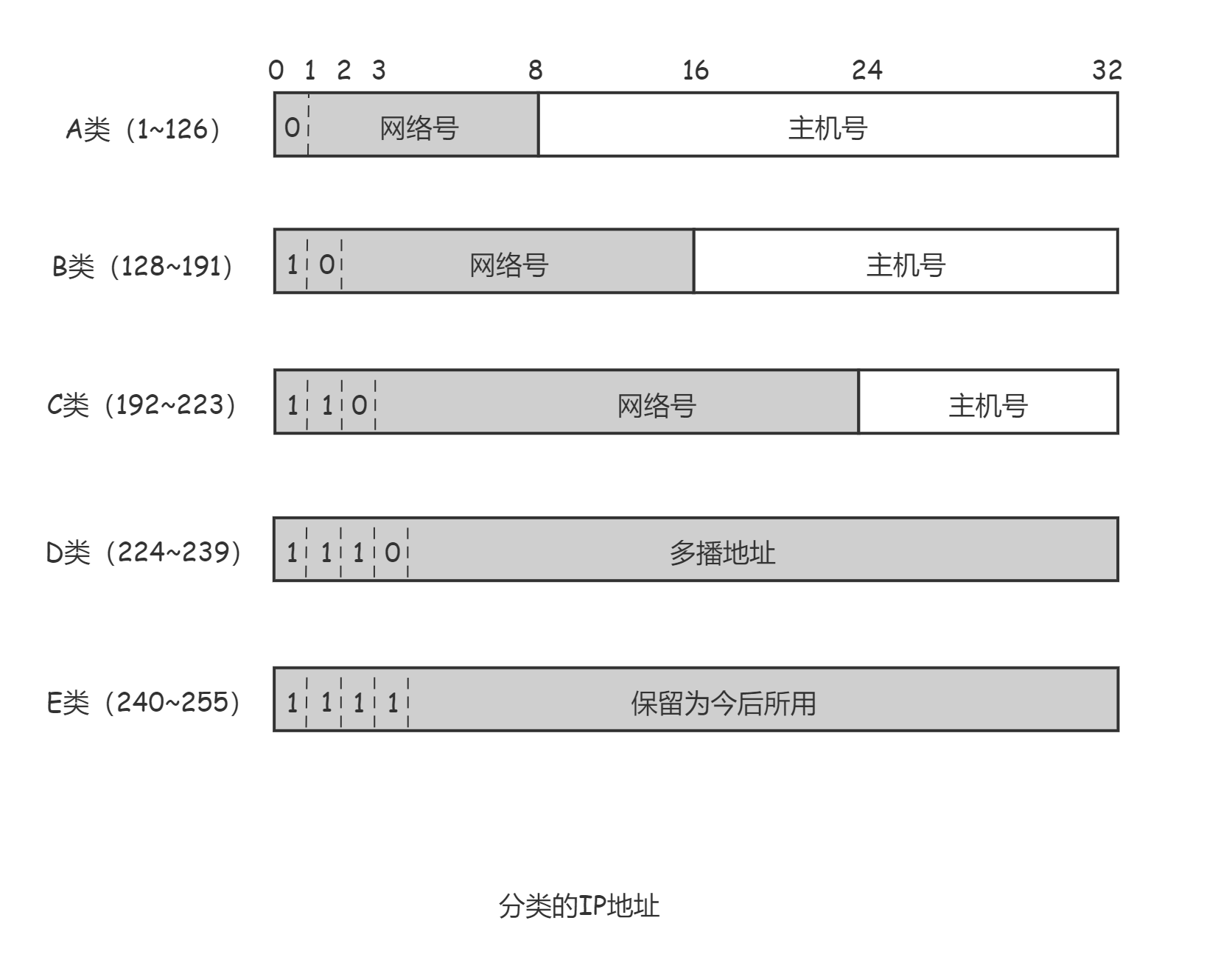 - D类IP地址的后23位用作组播,前5位不可用