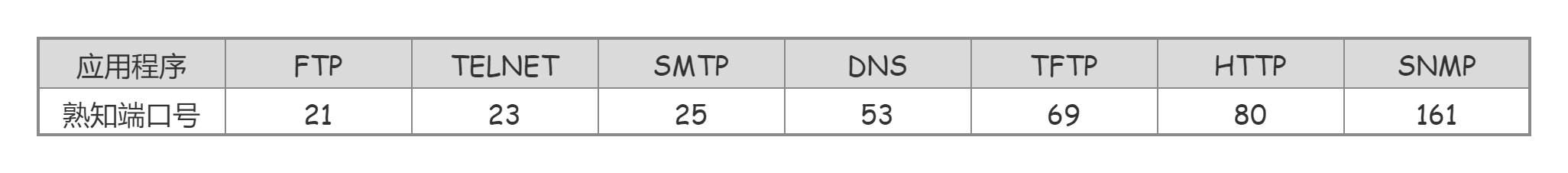 端口:应用进程通过端口号进行标识,端口号长度为16 b i t bit bit ,能表示65536个端口号