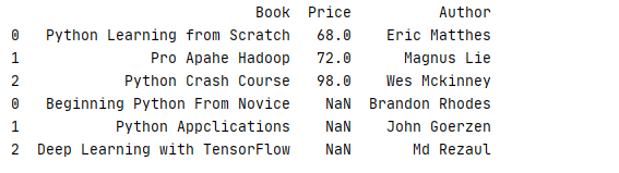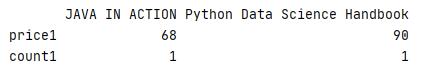1 price1=pd.Series(['68','90'],name='price1',index=['JAVA IN ACTION','Python Data Science Handbook'])