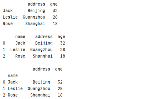 index:行索引集合,为空时将由0开始按整数排列
