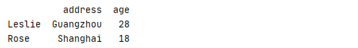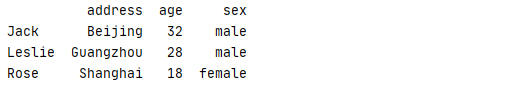 data[ 'Leslie' : 'Jack'] 等效于 data.loc[ 'Leslie' : 'Jack']