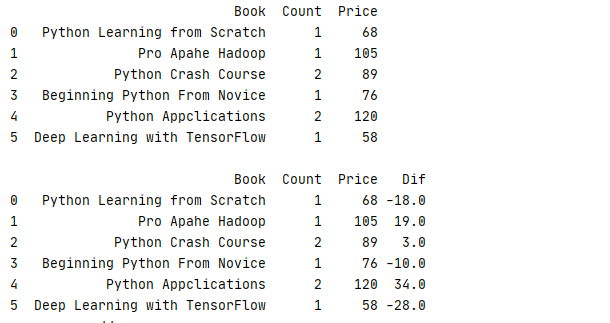 7 book.eval('Dif=Price-@avg',inplace=True)