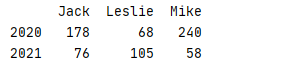 显式索引即 data[ 'Leslie' : 'Jack'] 作切片时,结果包含最后一个索引即 Jack