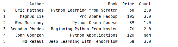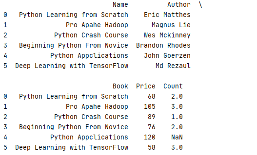 3 column=['Book','Count','Price']