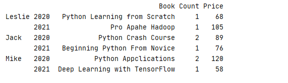 另外,数据还可以根据组合键进行分组,从而返回一个多级索引的结果