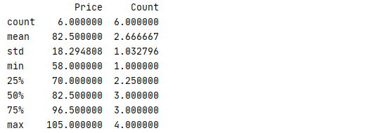 6 frame=pd.DataFrame({'price':price,'count':count})