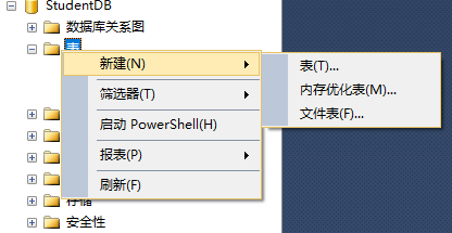 在表的位置右键==》新建==》表