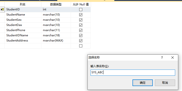 添加完主键之后,这个表就完成了,保存就可以了