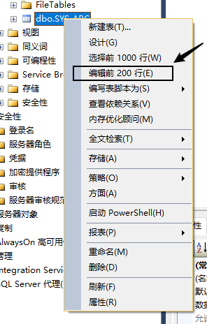 16.新建的表,右键编辑前200行: