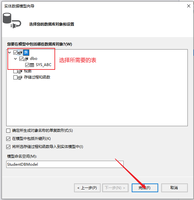9.选择我们需要的表,点击完成: