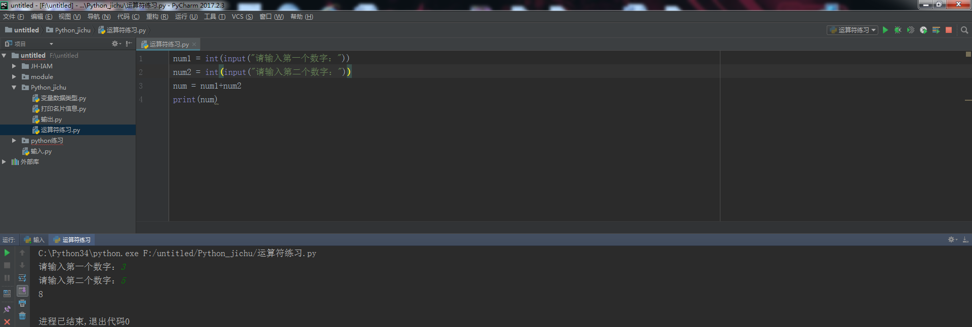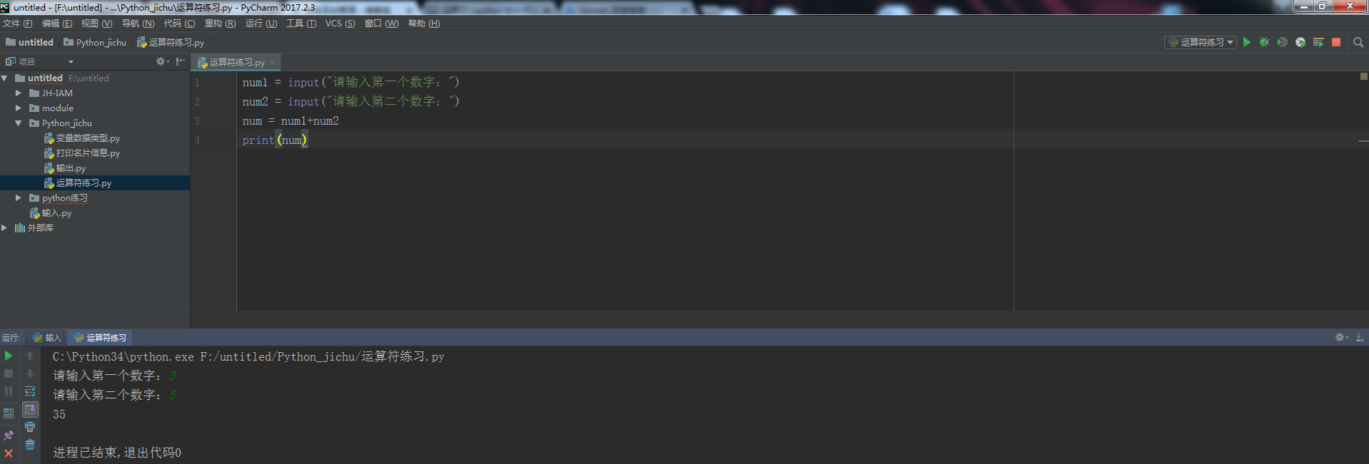 练习:输入两个数完成两个数的加法运算