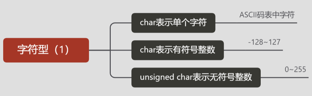 - char类型变量具有双重性:可以把它解释为一个字符,也可以解释为一个整数,实际的代码值取决于计算机环境。因此char类型的值可以算术运算中使用。
