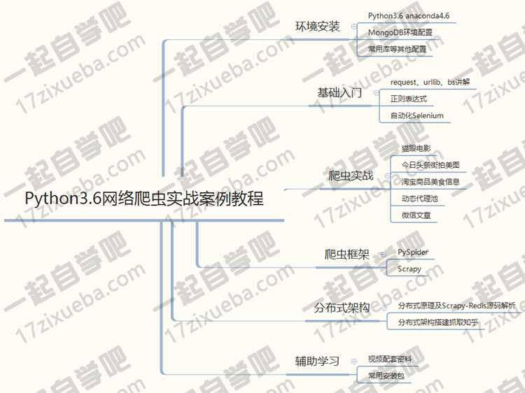 像ajax,post,html,json等等都非常细致的一一讲解,然后逐步深入到如何利用cookie,ip代理池的技术,来解决登陆验证与防止被封等等技巧,最后通过学习python爬虫框架与分布式技术