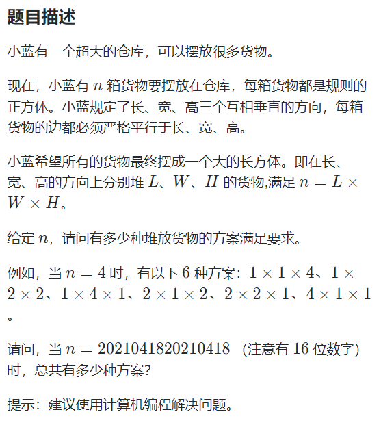 以上就是过时夕阳最近收集整理的关于蓝桥杯真题:货物摆放的全部内容,更多相关蓝桥杯真题内容请搜索靠谱客的其他文章。