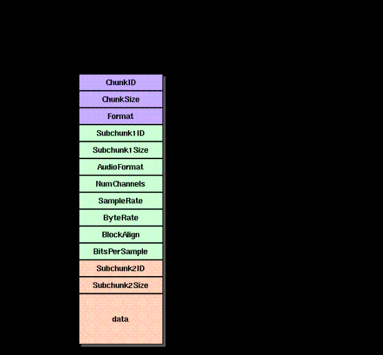 4)在wave数据流中可能有添加的子块。每一个子块有char SubChunkID[4],unsigned long SubChunkSize和SubChunkSize字节的数据