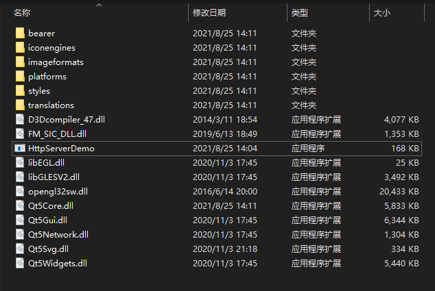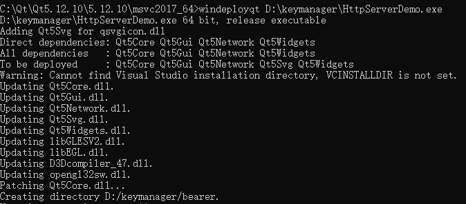 2、然后使用Qt自带的打包工具windeployqt对应用程序进行打包,其实就是把一些Qt的库或者依赖项添加进行来,可以在没安装Qt的电脑上使用exe,如果使用了Qt以外的第三方库,也需要把第三方库的依赖项添加进去,从电脑左下角的开始菜单打开Qt的命令行界面Qt 5.11.0 for Desktop(MinGW...),输入命令如下:windeployqt D:keymanagerHttpServerDemo.exe