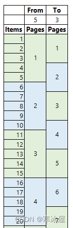 下面的示例说明了页面大小为5(发件人)和页面大小为3(收件人)的两种分页设计之间的页面重叠: