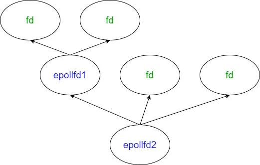 epollfd2 监视了 epollfd1 和 2 个“非 epoll”类型的 fd