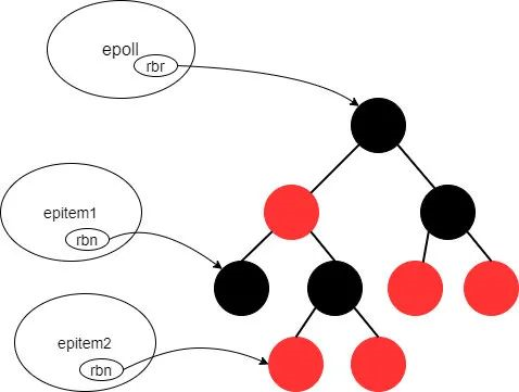 epoll、epitem、和红黑树间的组织关系是这样: