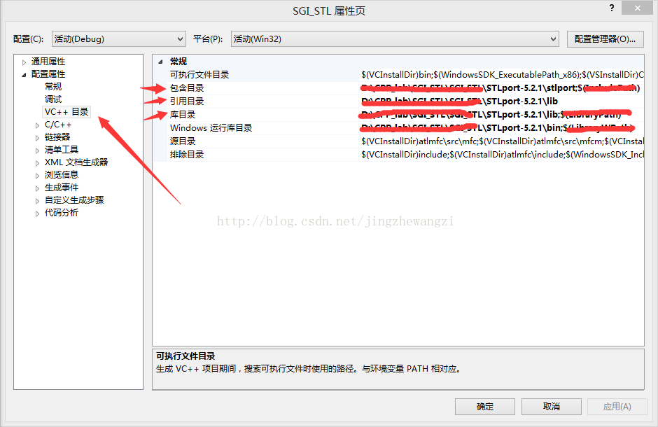 在VS项目中配置STLport的细节如下:引用目录好像是预编或者,命令编译传参相关的,我不熟悉,就没有去测试,运行时目录是dll,库目录则是lib。请不要被我赖人路径困扰。