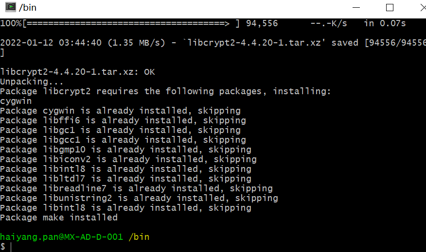 重新打开cygwin 进到存放apt-cyg目录下