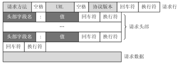 请求行、请求头部、空行、请求数据