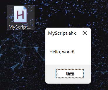 - 给脚本命名,备注:文件名必须带 .ahk 后缀,例如 MyScript.ahk