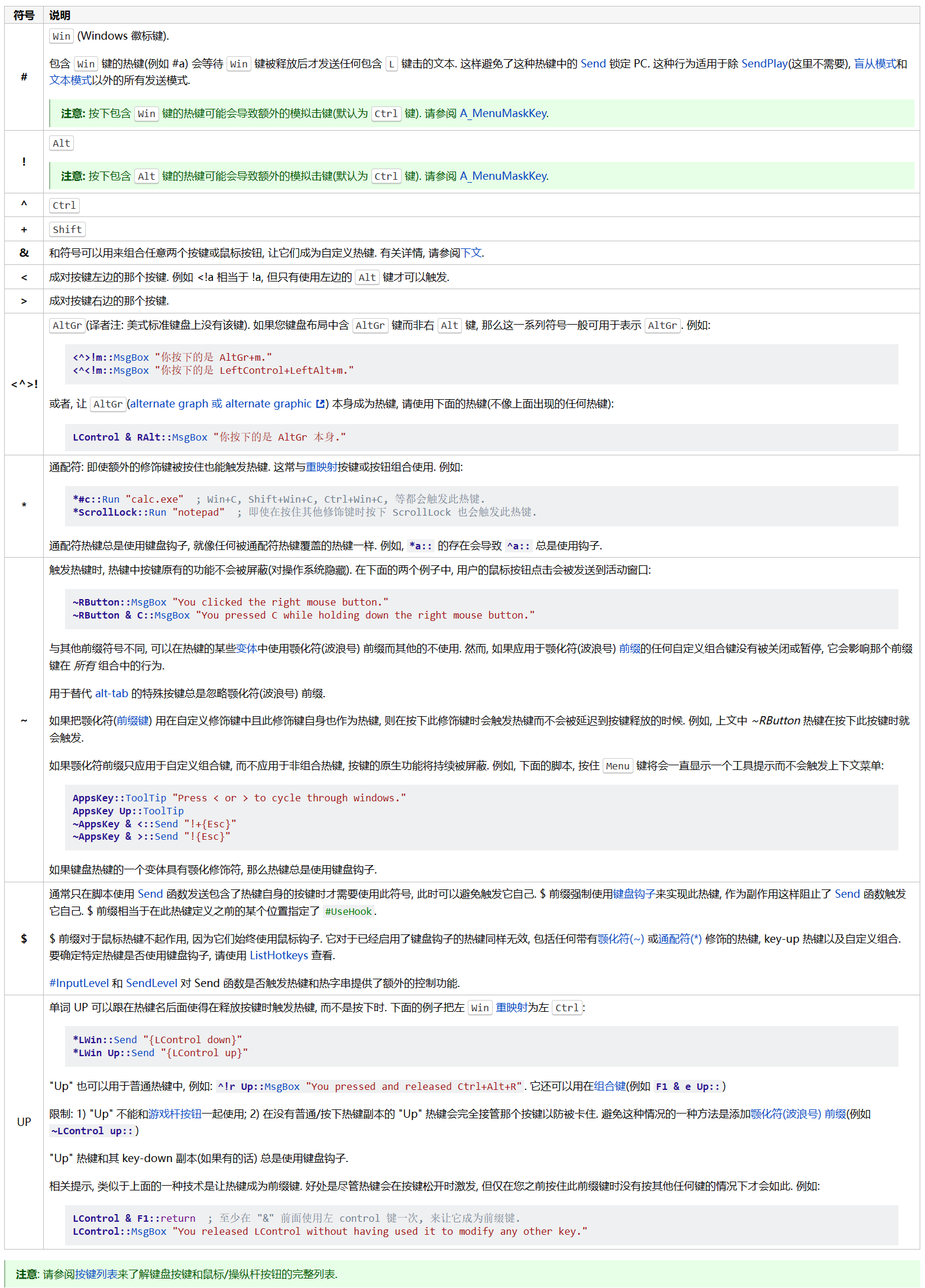热键修饰符,详见官网文档:热键 - 定义与使用 | AutoHotkey v2