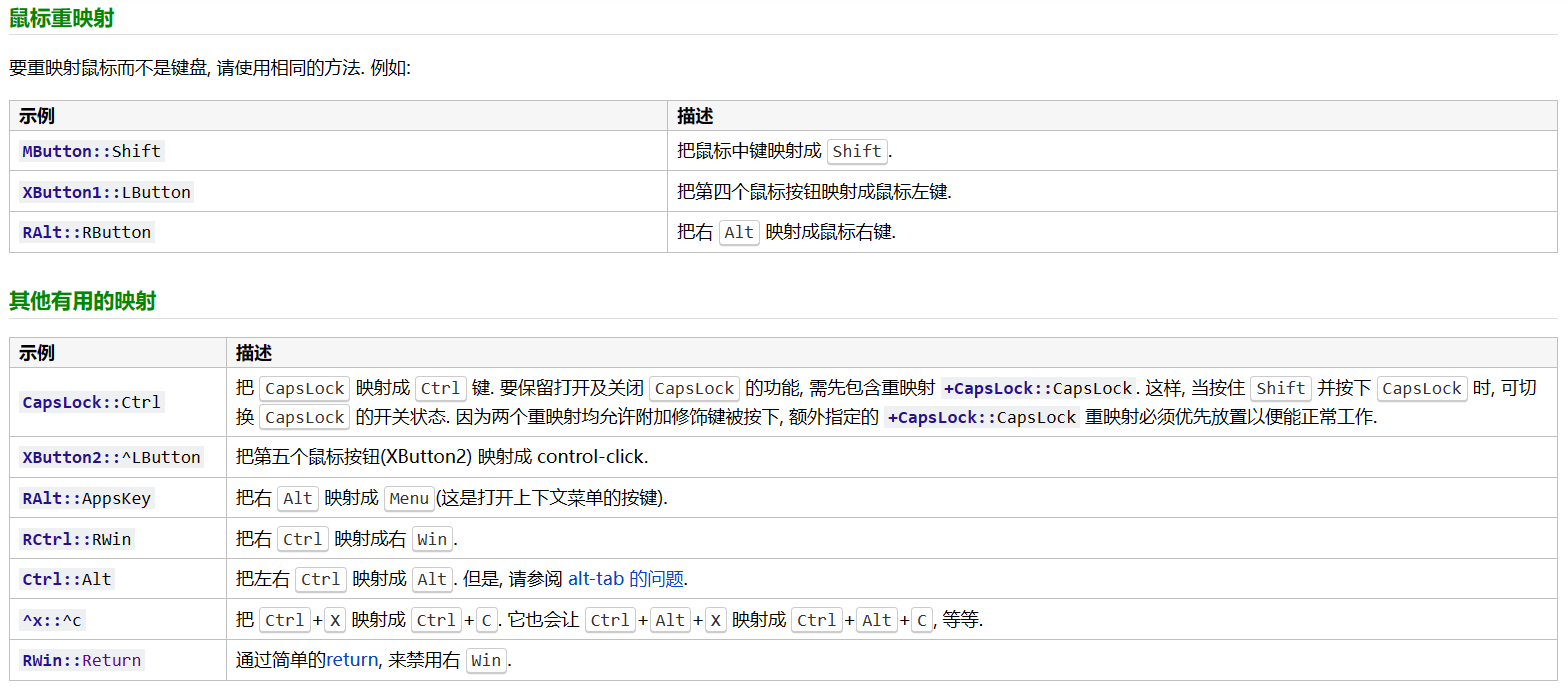 以上就是柔弱小鸽子最近收集整理的关于AutoHotkey 使用总结1. 下载2. 安装3. 使用4. 热键5. 按键列表6. 重映射按键的全部内容,更多相关AutoHotkey内容请搜索靠谱客的其他文章。
