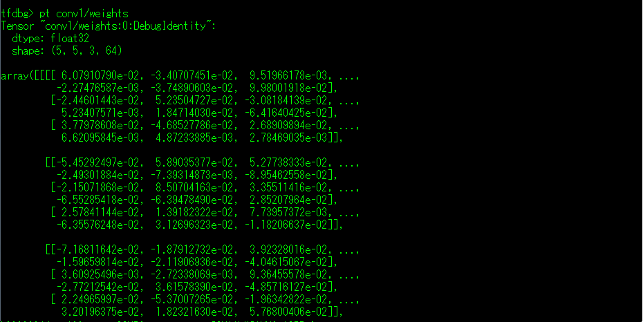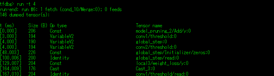 (1)lt 命令: 该命令在不使用参数的情况下会输出本次Session.run()执行后所有的张量一览表。