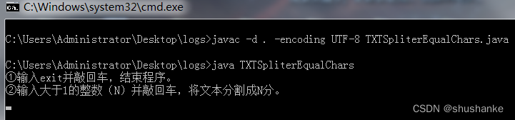 javac -d . -encoding UTF-8 TXTSpliterEqualChars.java