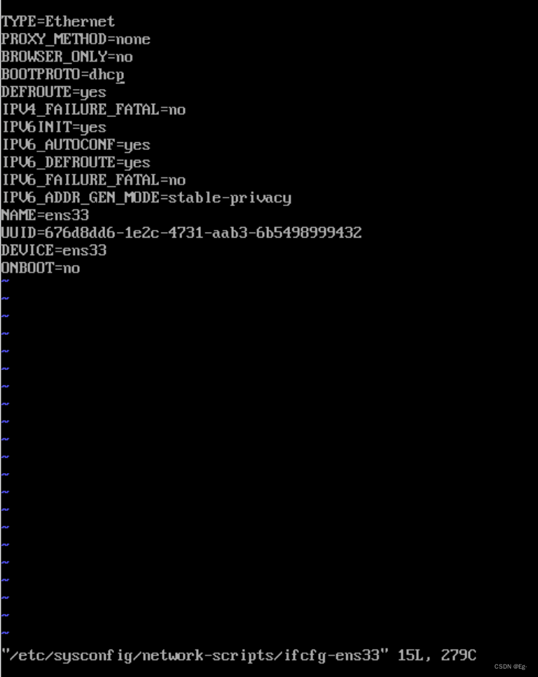 vi /etc/sysconfig/network-scripts/ifcfg-ens33