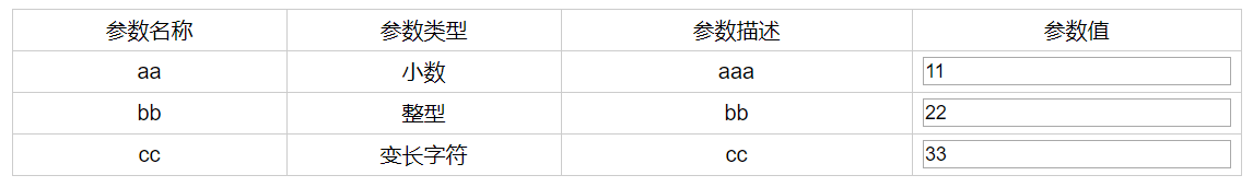 如表所示,需要获取参数名称和参数值组成对象传入后台