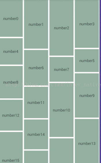 recyclerView.setLayoutManager(new StaggeredGridLayoutManager(4, StaggeredGridLayoutManager.VERTICAL));