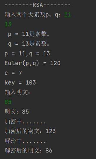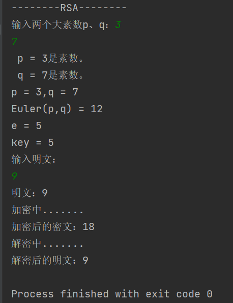 System.out.print("输入两个大素数p、q:");