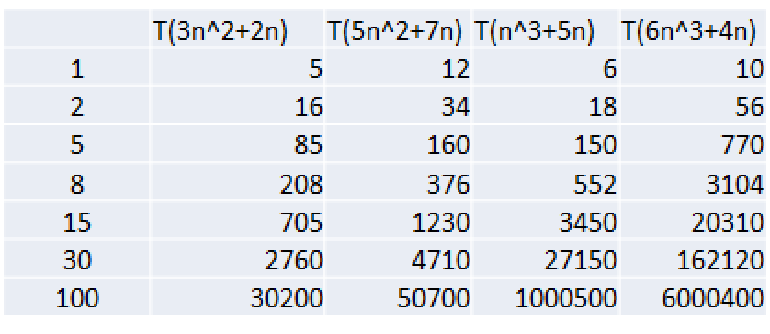 如:T(n)=n2+7n+6与T(n)=3n^2+2n+2它们的T(n)不同,但时间复杂相同,都为O(n^2).