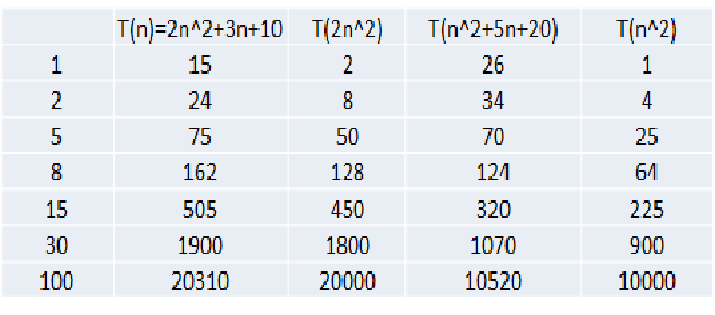 - 修改后的运行次数函数中,只保留最高阶项T(n)=n^2+7n+1 => T(n)=n^2