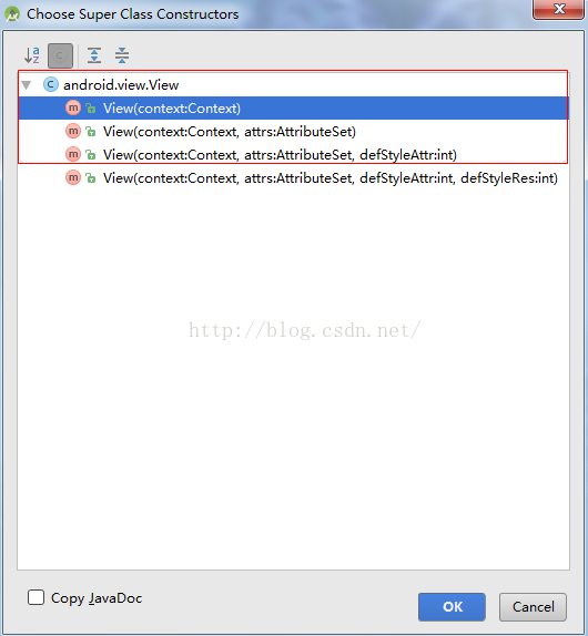 ( 2.)重写红色框中的方法,因为在实际开发过程当中第4个方法相对而言我们用的比较少,最后点击ok就自动帮你实现好了这三个方法
