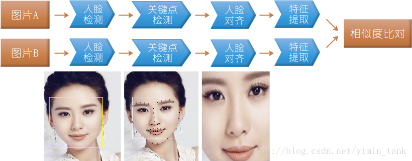 两张图片相似度比对如“人证合一”场景,其实并不是直接对图片数据进行比较,而是对两张图片分别进行人脸建模特征提取,然后把两个特征进行相似度比对。
