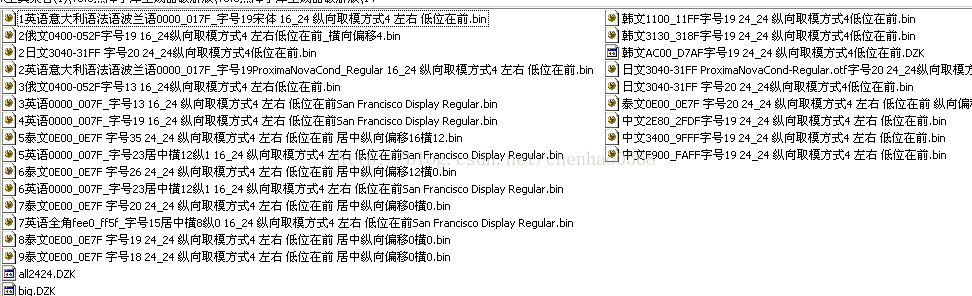 以上就是强健唇彩最近收集整理的关于生成字节或bin文件 任意语言,任意大小,任意字体,任意格式,任意范围,任意字符,任意扫描方式取模,UNICODE_Font_宋体16_ 纵向取模下高位_数据排列_从左到右从上到下请提供你要的扫描方式,比如下面的 java取模数据格式转换源码 宽高16*16 高位在前 转为 低位在前的全部内容,更多相关生成字节或bin文件内容请搜索靠谱客的其他文章。