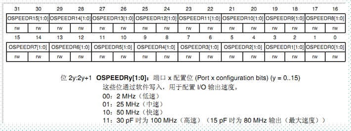 13.端口输出速度寄存器(GPIOx_OSPEEDR)如下: