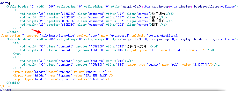 当点击文件导入的时候,调用导入文件的程序(TRA_IMP_SAVE)输出相应的显示页面,