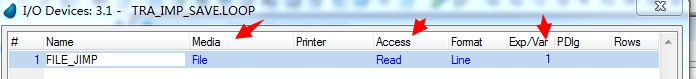 Ctrl+I创建i/o输出通道的时候要注意Media选择File,Access选择Read,Format选择Line,Exp/Var中写入限制条件Trim(FILE)