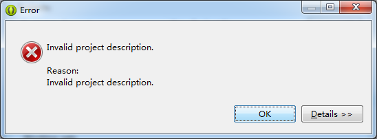 a、此错误简单翻译为:无效的项目描述。点击错误对话框中的detail按钮,提示为:overlaps the location of another project的描述,翻译成中文也就是说导入的项目位置与另外一个项目重叠。
